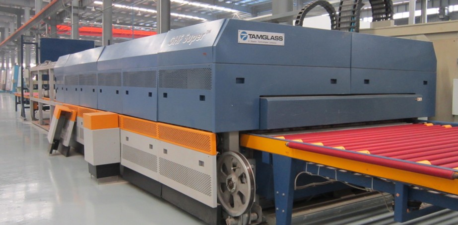 采用芬蘭TAMGLASS公司及國內知名廠家的強制對流鋼化線4條,先進的強制對流/輻射加熱方式在短時間內將玻璃內、外表層溫度均勻地加熱到鋼化溫度點,能確保鍍膜玻璃在加熱鋼化的過程中保持良好的平整度,減少了在普通鋼化爐生產時相對較長時間加熱造成的膜層損壞、輥印、麻點等表面質量問題,因此所生產的鋼化玻璃具有更好的光學質量。